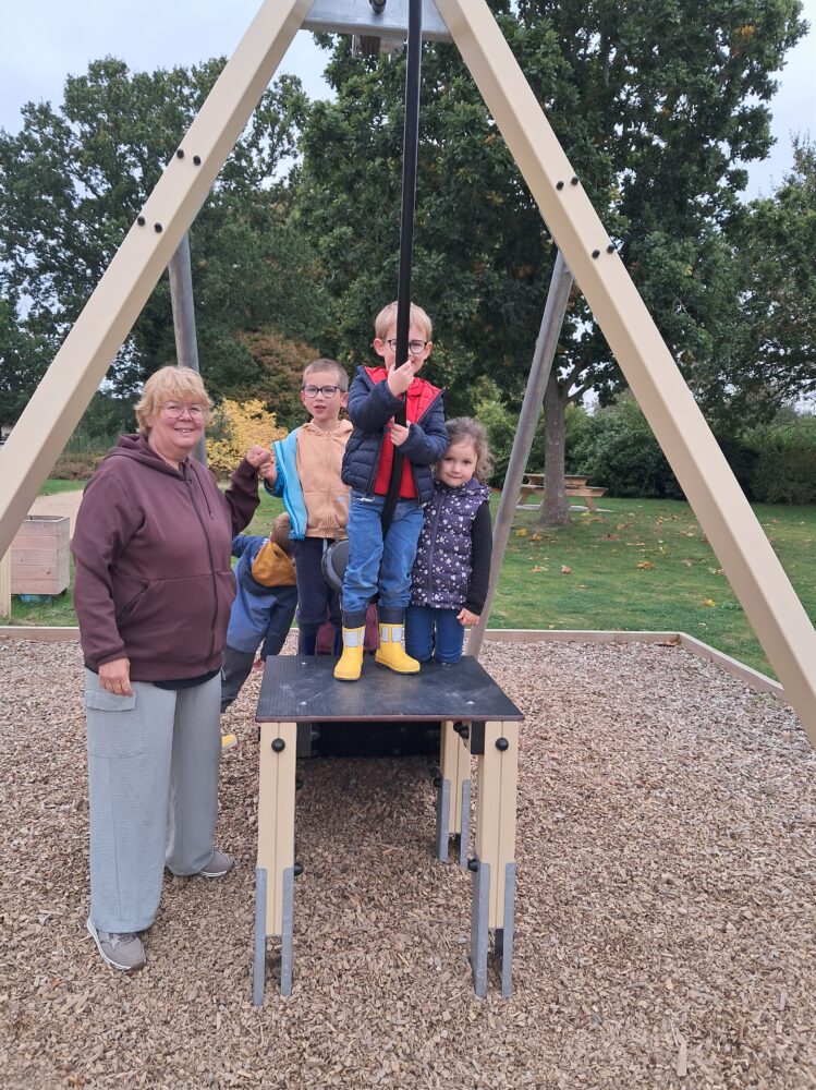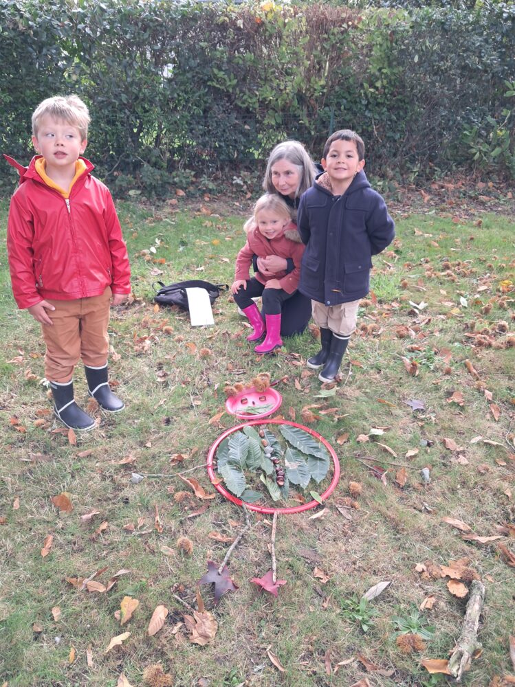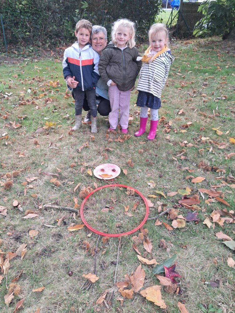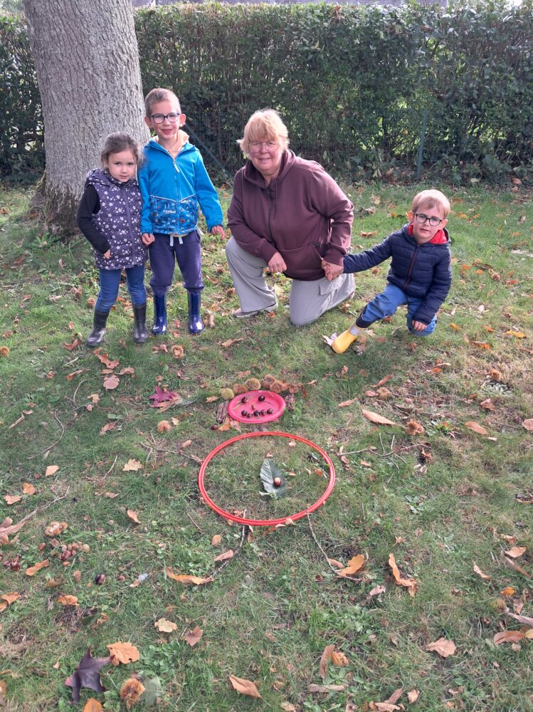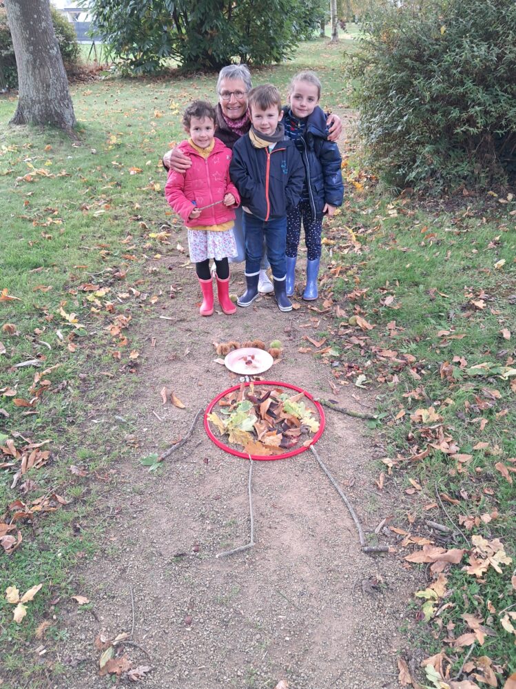 Mardi 14 octobre, plusieurs mamies et papis sont venus avec nous pour profiter de l’aire de jeux. Nous sommes ensuite allés au parc pour réaliser une « cueillette de l’automne » et nous avons terminé notre matinée par la réalisation de très beaux bonshommes avec des éléments naturels. Nous avons passé un agréable moment.