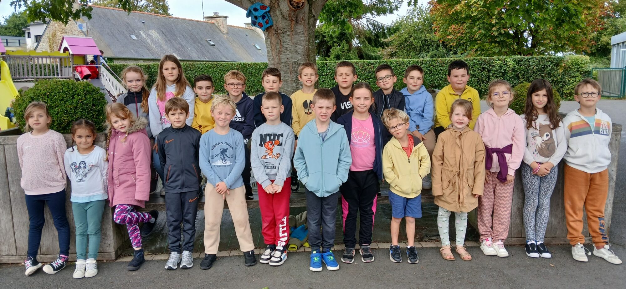 En CE1/CE2, nous sommes 24 élèves, 10 CE1 et 14 CE2. Notre enseignante s’appelle Marie-Pierre Le Tertre.