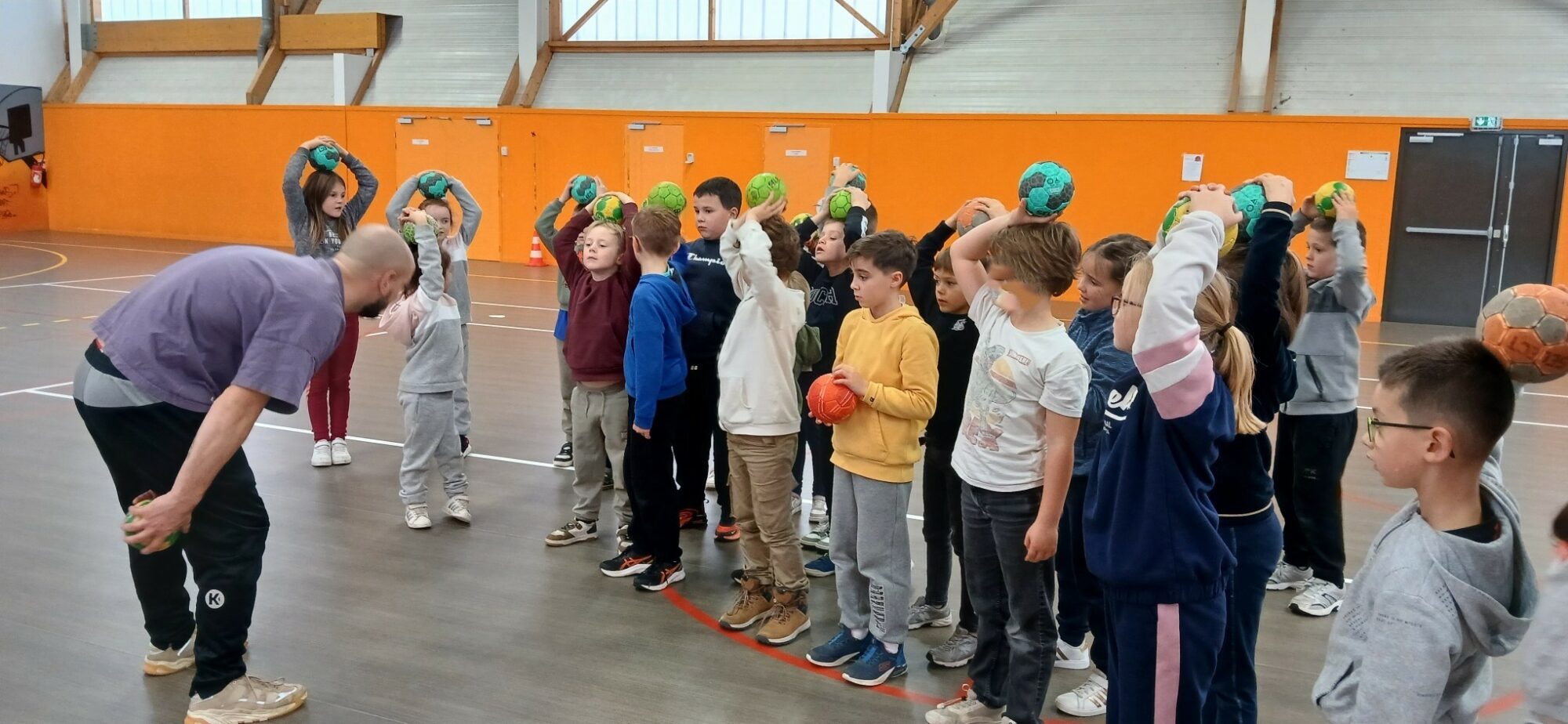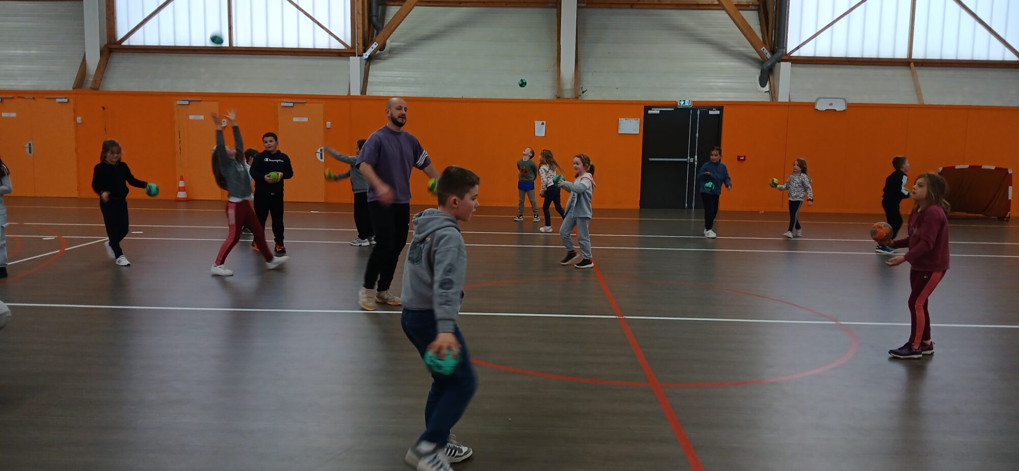 Durant cette période, les trois classes de primaire ont bénéficié d’une initiation au hand-ball. Ces séances ont été animées par Gwendal, animateur sportif du club de Plouagat. Durant une heure par semaine, les élèves ont découvert ce sport collectif et progressé lors de ces séances menées de façon très dynamique et variées avec notamment la rotation sur plusieurs ateliers suivis de matchs.