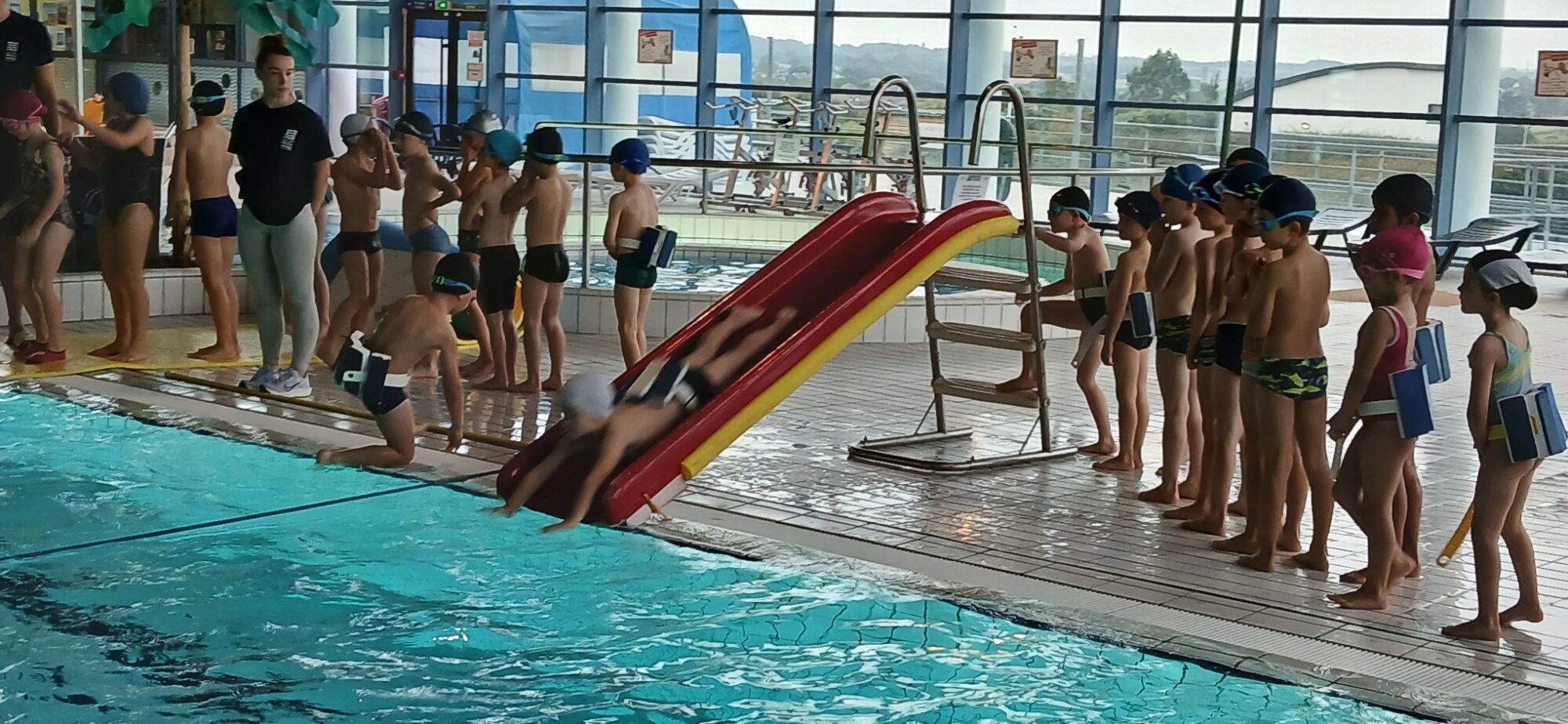 Durant cette première période, les élèves de CP, CE1 et CE2 ont bénéficié d’un cycle piscine de 10 séances. Après un petit test, ils ont été répartis sur quatre groupes selon leur niveau. Deux groupes étaient avec des maîtres nageurs et les deux autres avec les maîtresses. Ainsi chacun a pu progresser à son rythme. A chaque séance, ils ont travaillé dans deux zones différentes de la piscine. Lors de la dernière séance, ils ont fait un parcours et ont pu utiliser le toboggan. Un grand merci aux parents qui nous ont accompagné dans les vestiaires et dans les bassins.