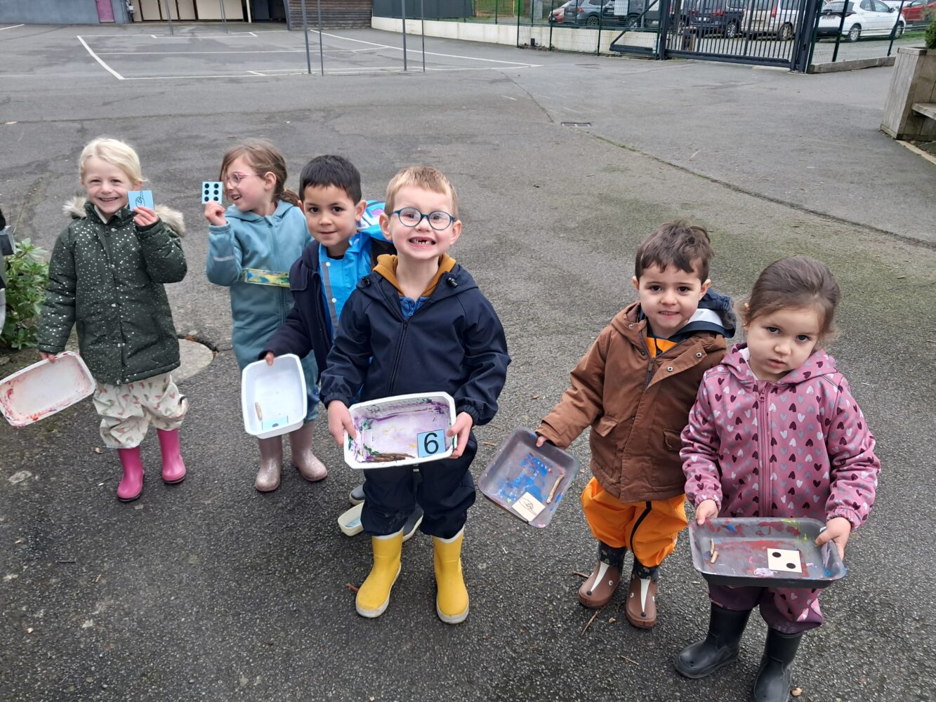 dénombrer des quantités : aller chercher de 1 à 4 objets pour les MS , de 4 à 6 objets pour les GS;