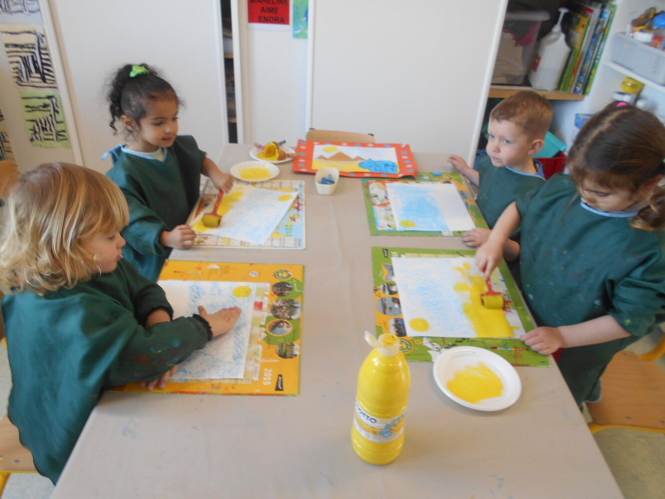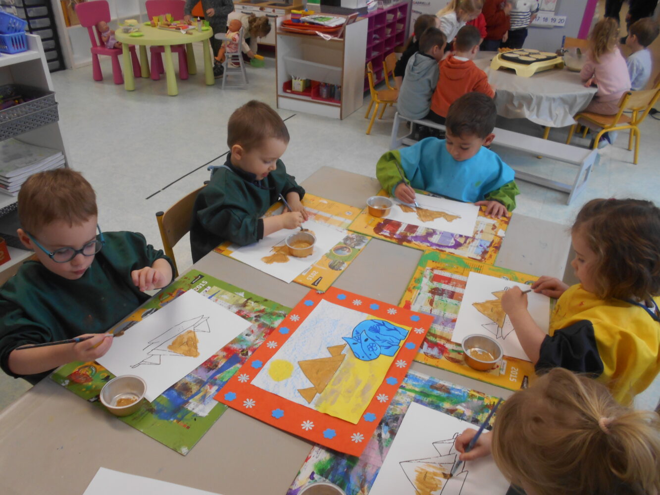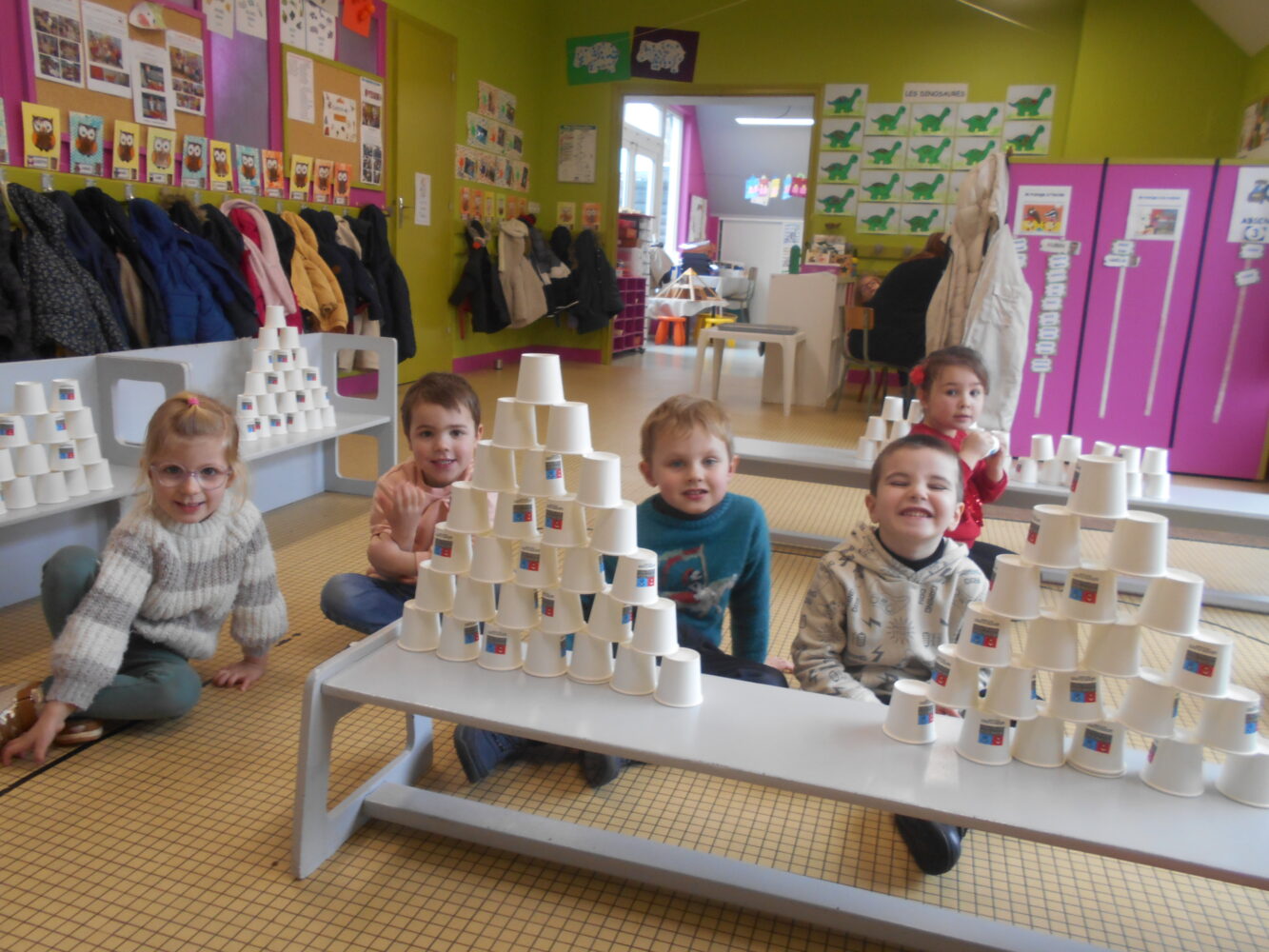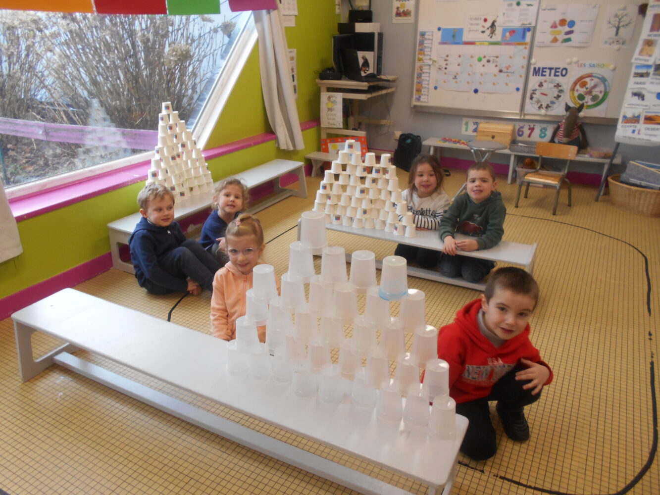 À travers des lectures, des échanges et différentes activités, ils ont découvert une civilisation fascinante et se sont enrichis d’un vocabulaire nouveau : pharaon,, momie, sarcophage, pyramide, désert….Ils ont découvert l’album Petit Noun, support permettant de réaliser de belles oeuvres et des pyramides avec des verres.