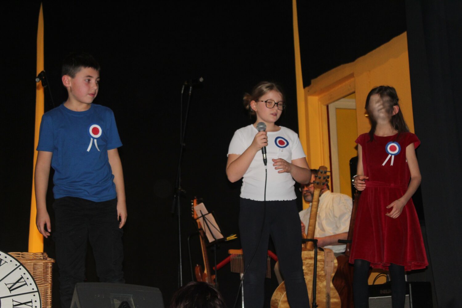 Tout au long du spectacle, les enfants ont été accompagnés sur scène par Stéphane, intervenant pour L’Eff Armor Communauté, dont la présence bienveillante a été précieuse. La sonorisation était assurée par Marc Thouenon, papa de Lucien, que nous remercions chaleureusement pour son aide.