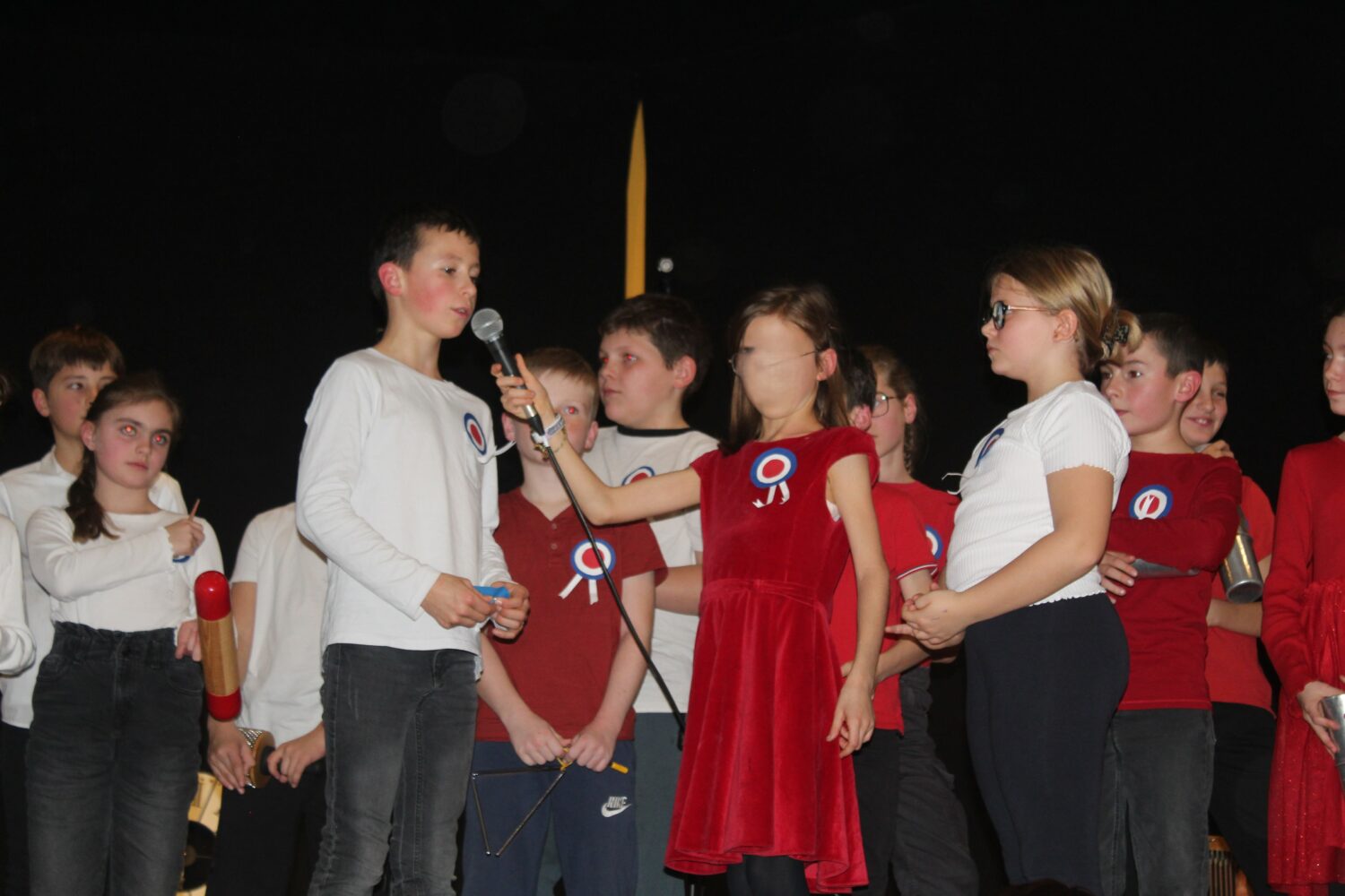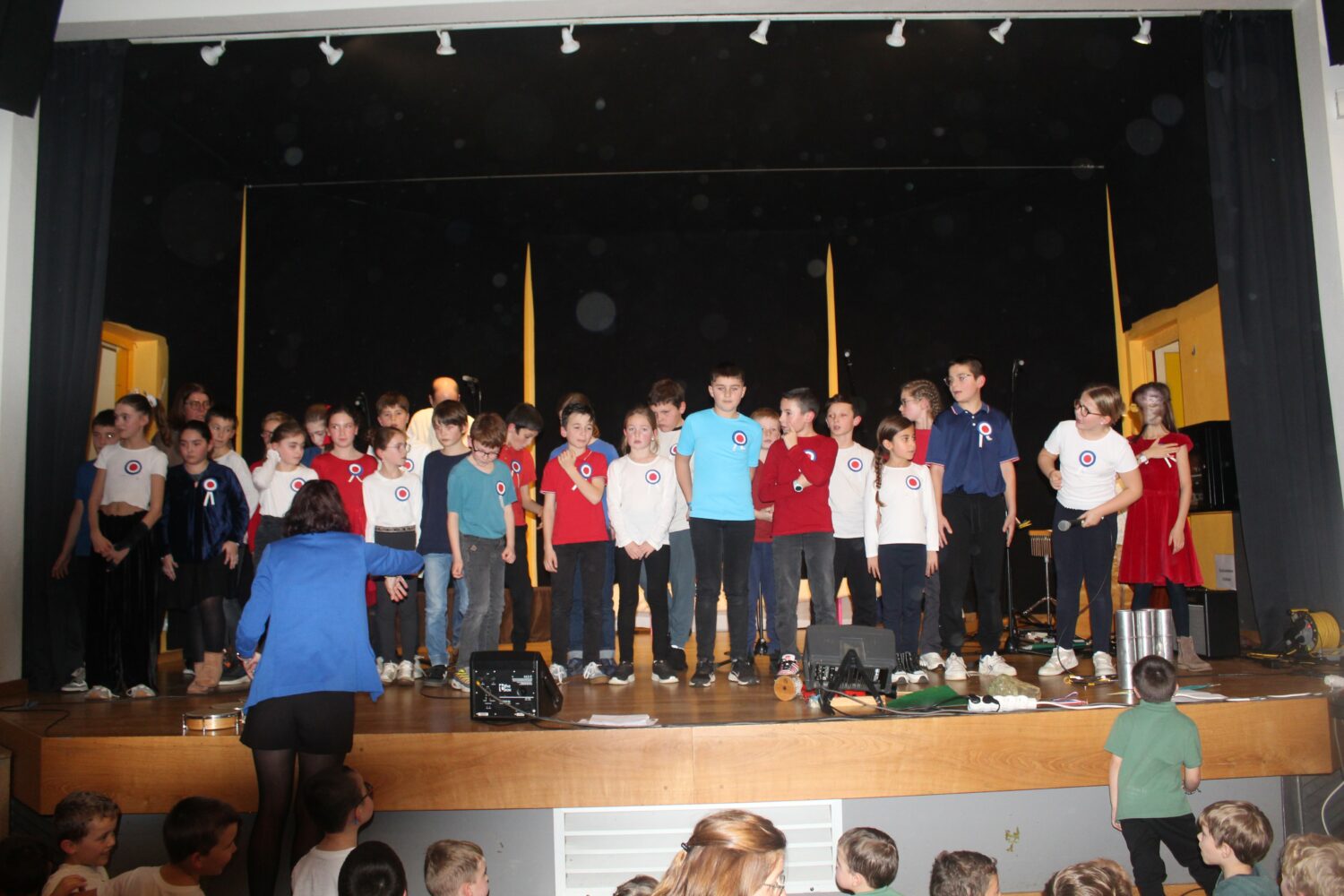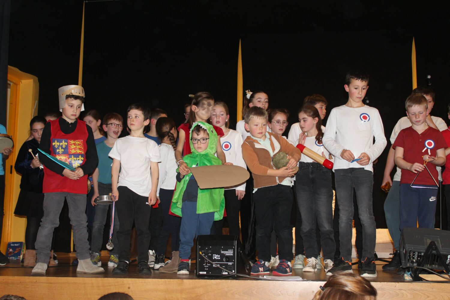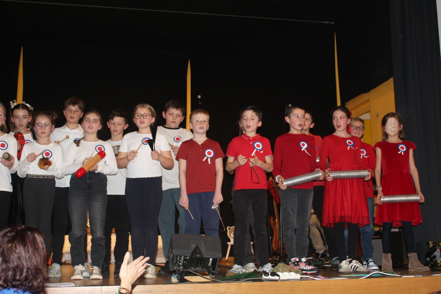 Enfin, l’époque contemporaine a été portée par les CM, qui ont offert la cocarde, dernier objet nécessaire pour réparer complètement le temps. Le spectacle s’est conclu par une Marseillaise revisitée et personnalisée, interprétée par les enfants à l’aide de divers instruments, dans une ambiance joyeuse et fédératrice.