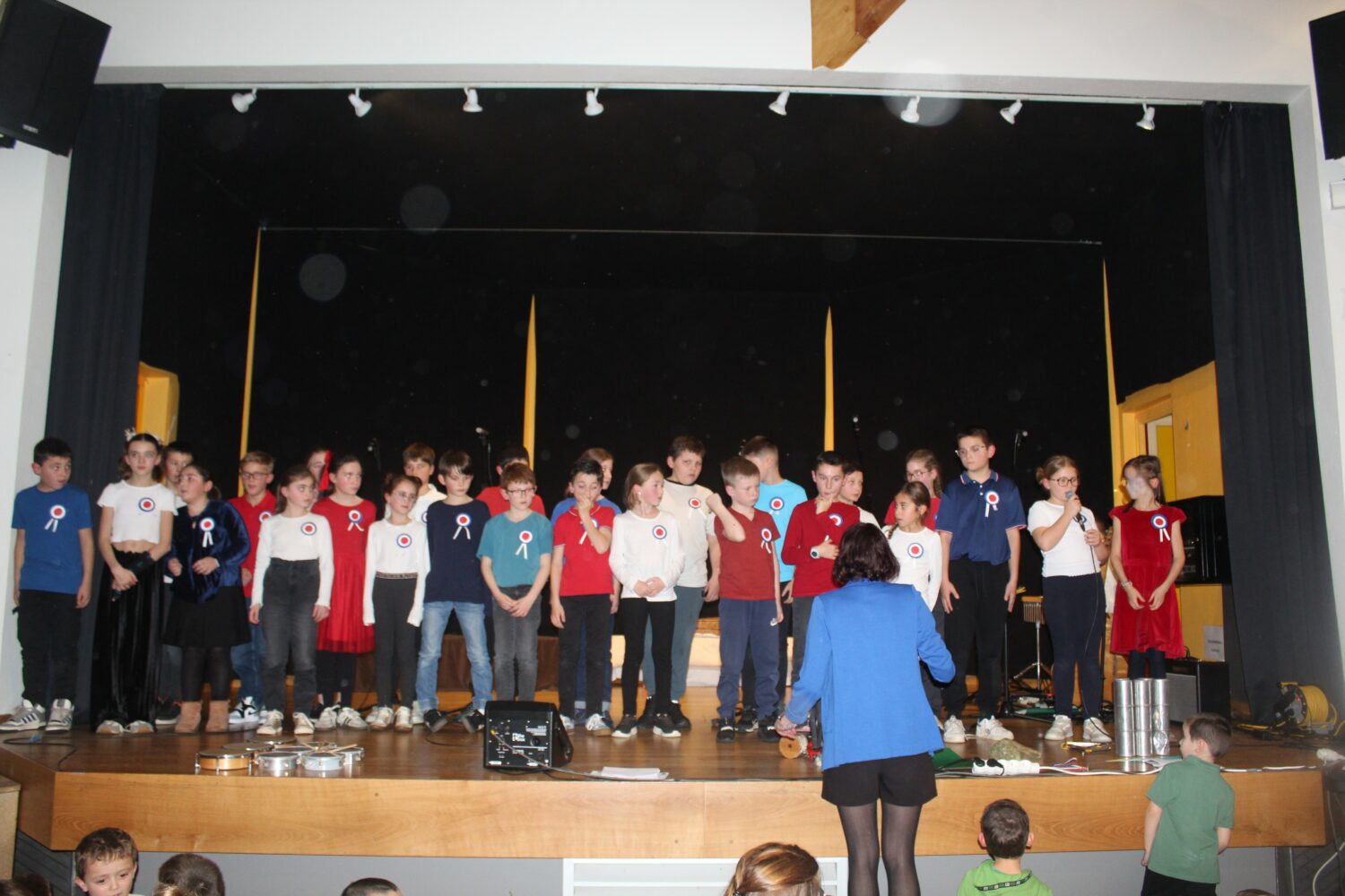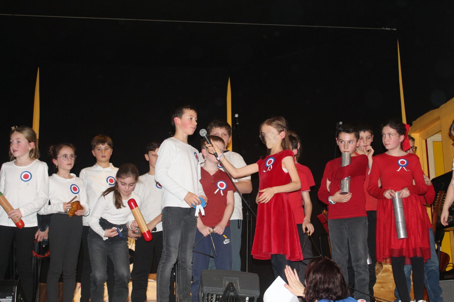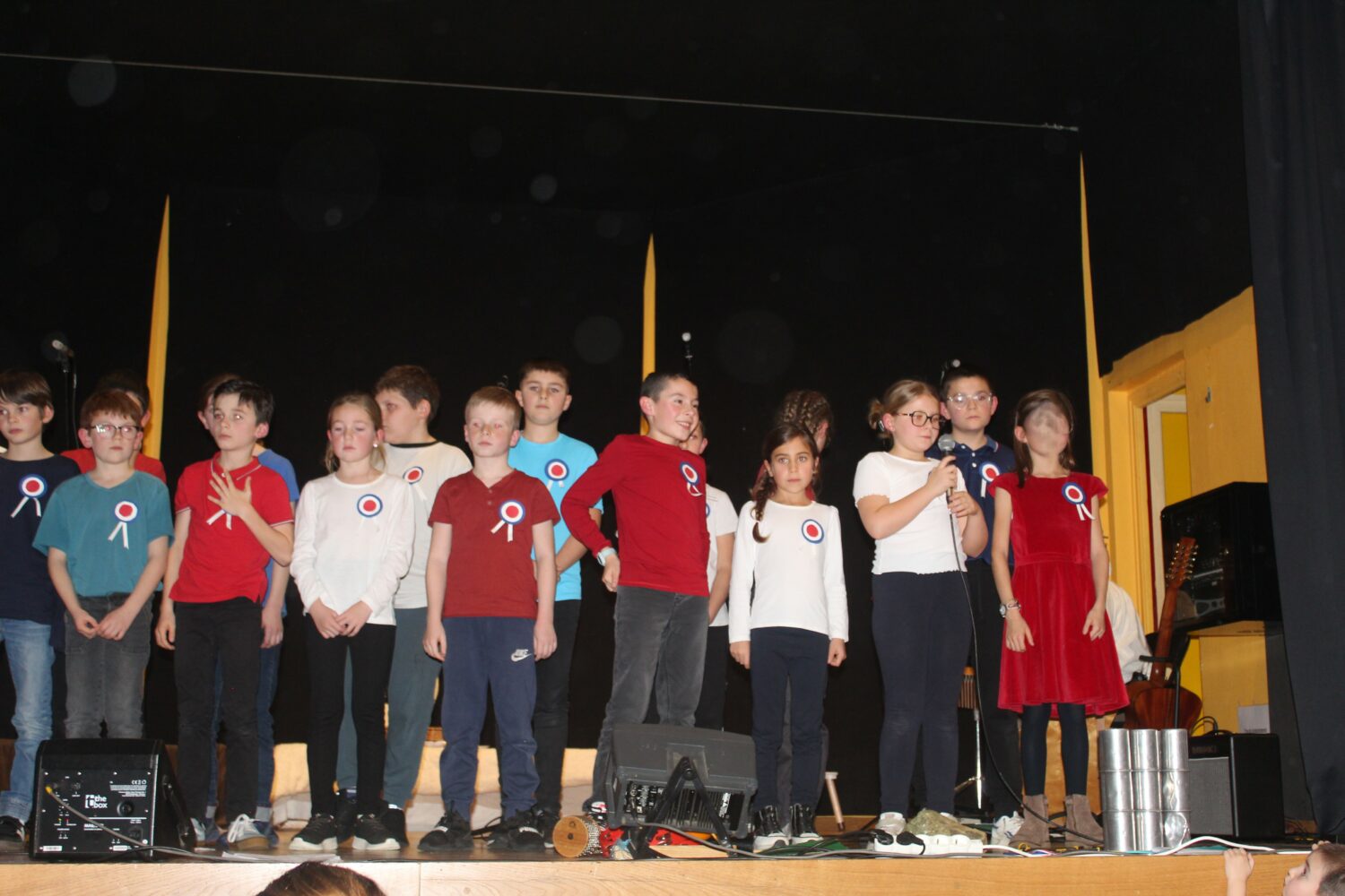 Enfin, l’époque contemporaine a été portée par les CM, qui ont offert la cocarde, dernier objet nécessaire pour réparer complètement le temps. Le spectacle s’est conclu par une Marseillaise revisitée et personnalisée, interprétée par les enfants à l’aide de divers instruments, dans une ambiance joyeuse et fédératrice.