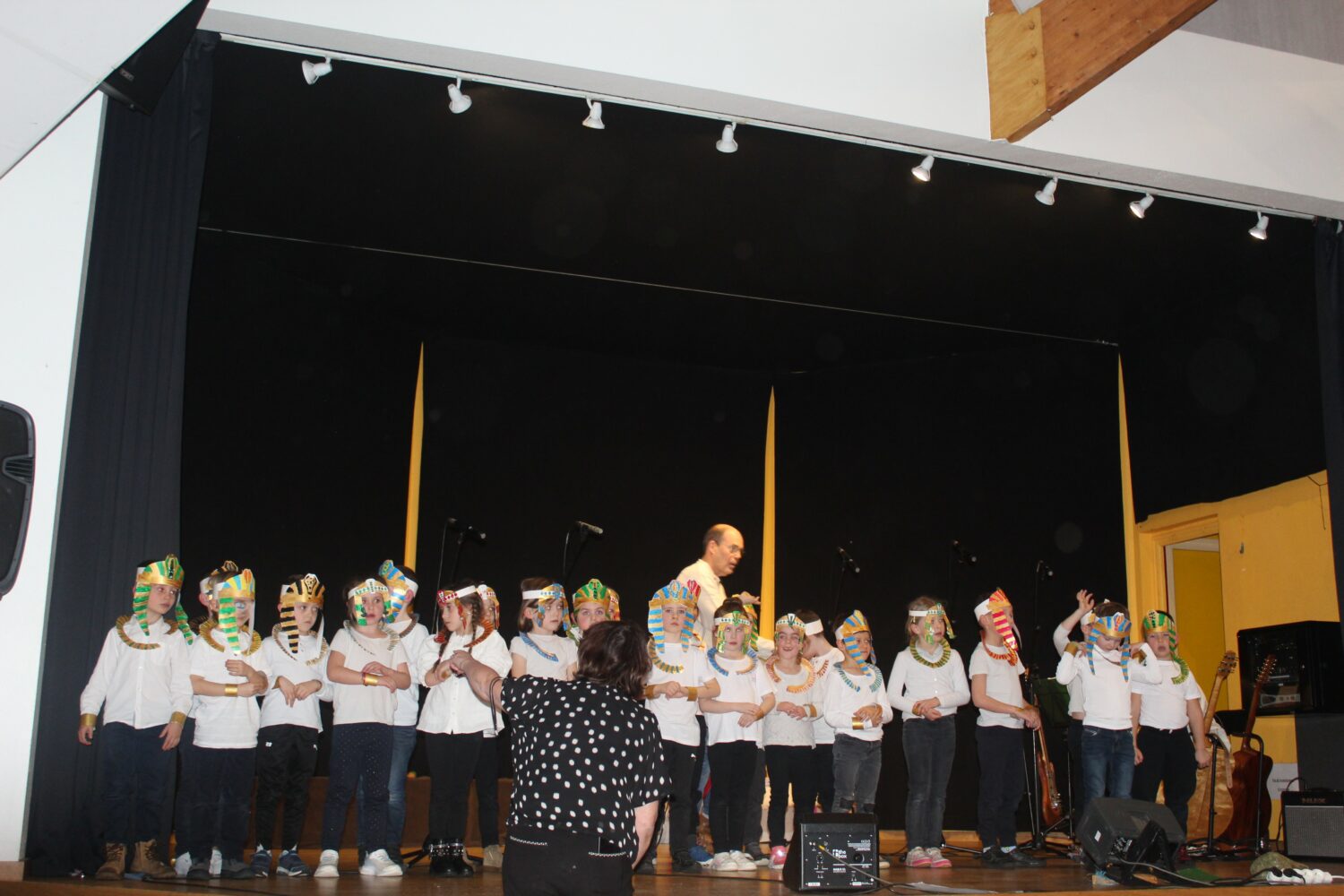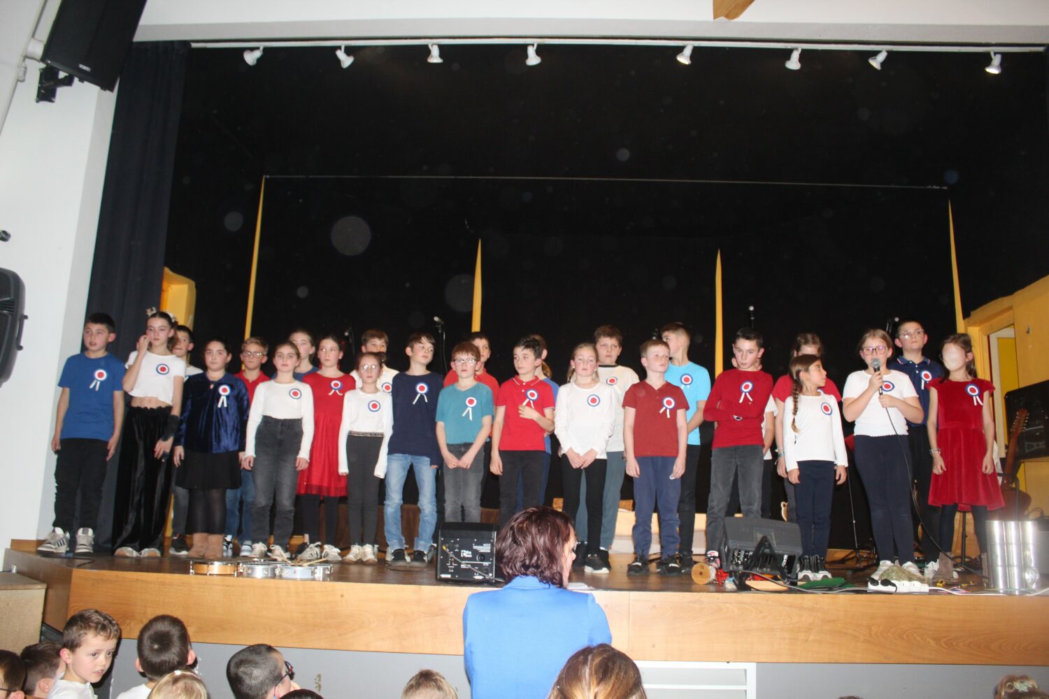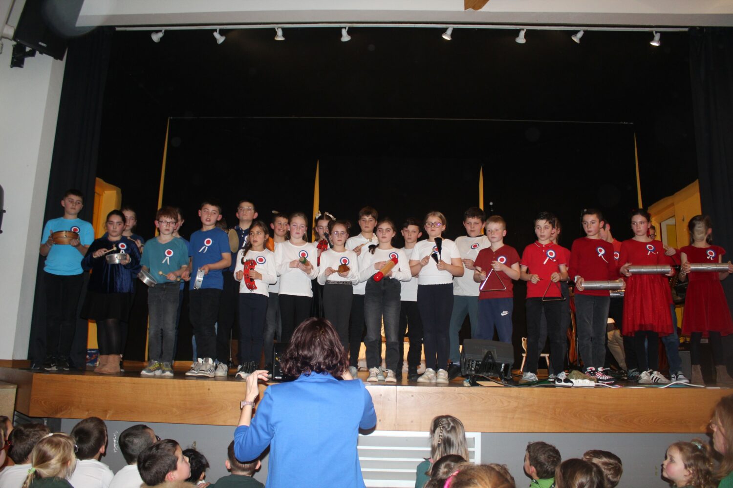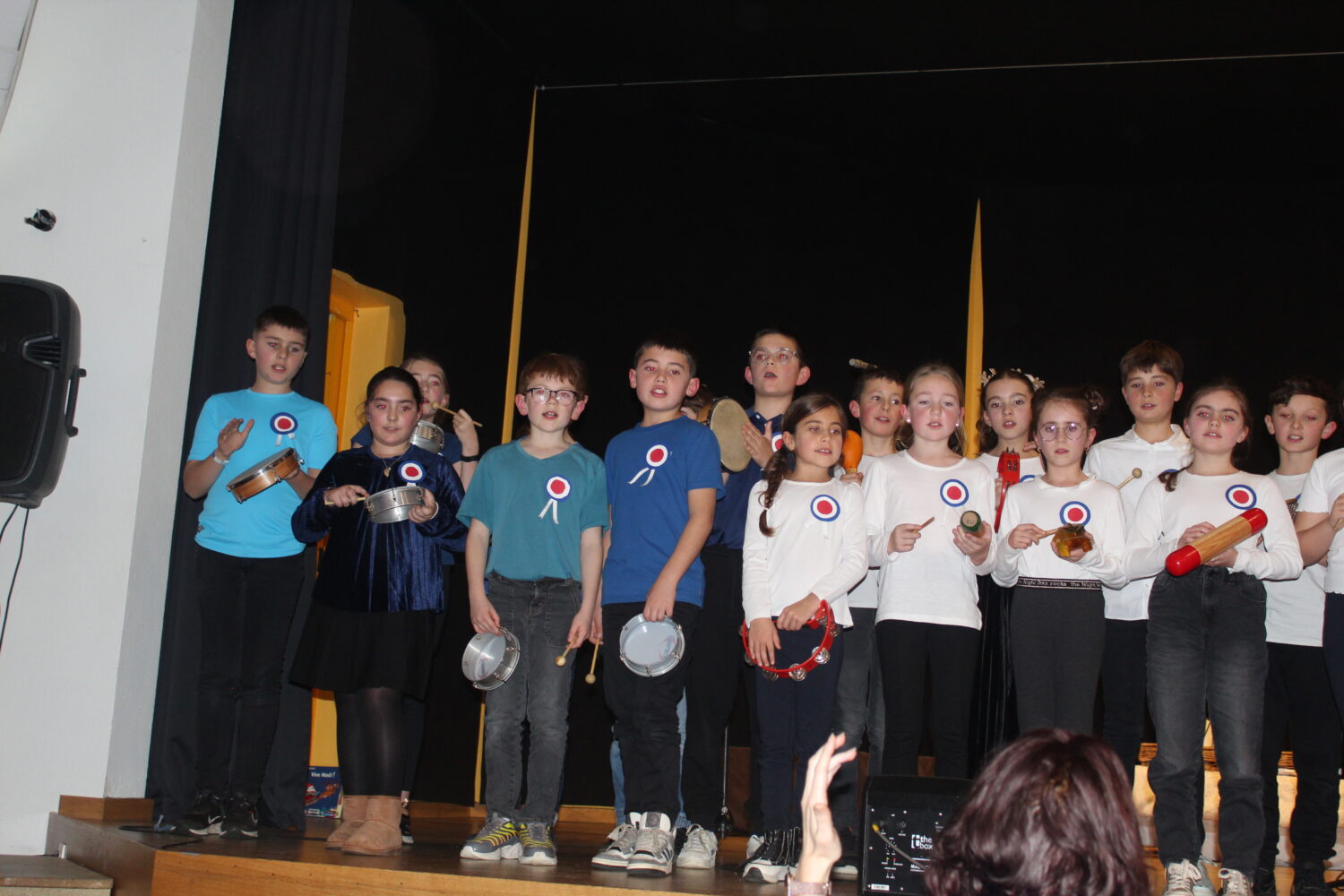 Enfin, l’époque contemporaine a été portée par les CM, qui ont offert la cocarde, dernier objet nécessaire pour réparer complètement le temps. Le spectacle s’est conclu par une Marseillaise revisitée et personnalisée, interprétée par les enfants à l’aide de divers instruments, dans une ambiance joyeuse et fédératrice.