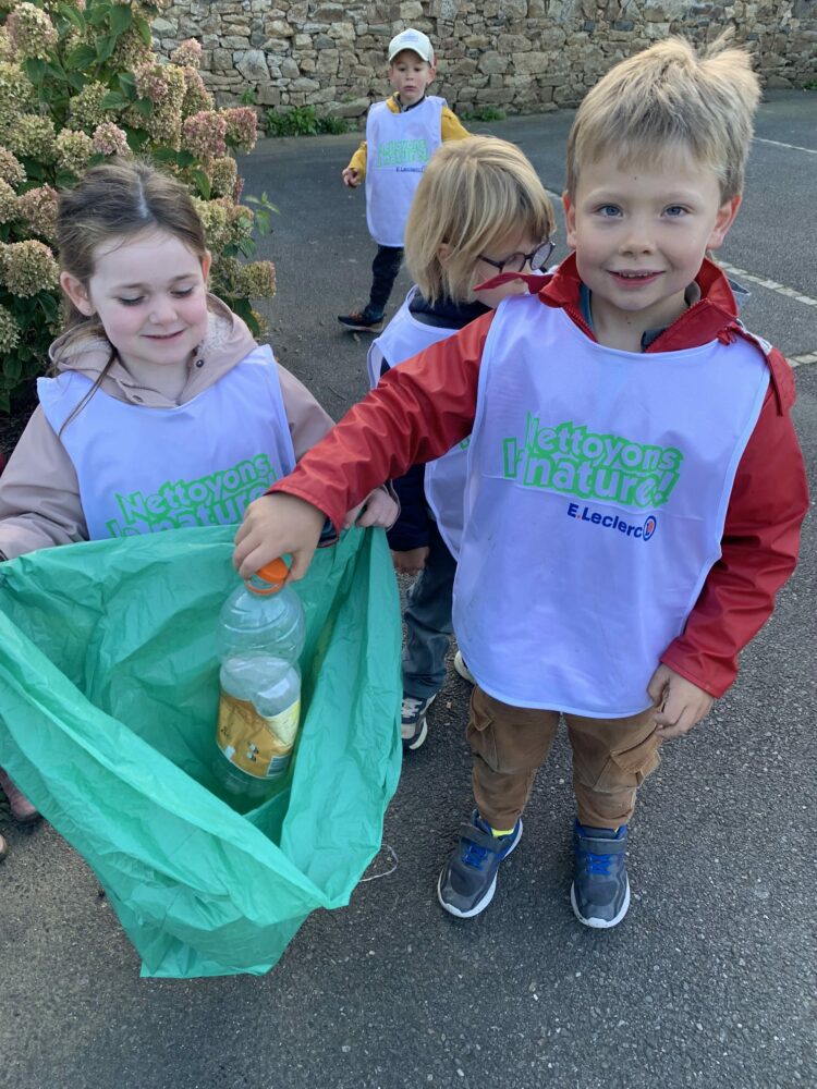 Vendredi 26 septembre, l’opération « Nettoyons la nature » a permis de sensibiliser les élèves au respect de l’environnement. Équipés de leur kit de nettoyage : sacs-poubelle et chasubles, les élèves de maternelle sont partis à la chasse aux déchets aux alentours de l’école et au jardin public.