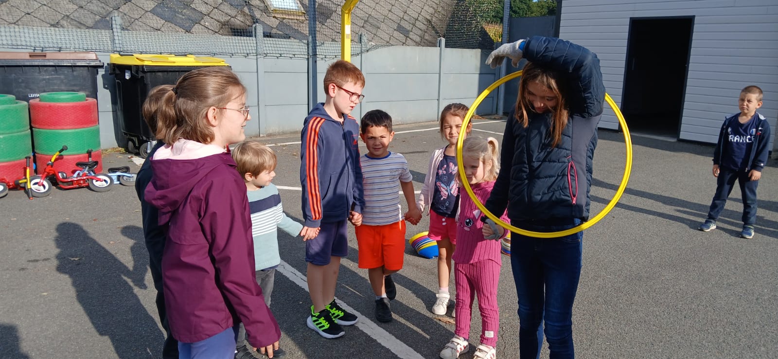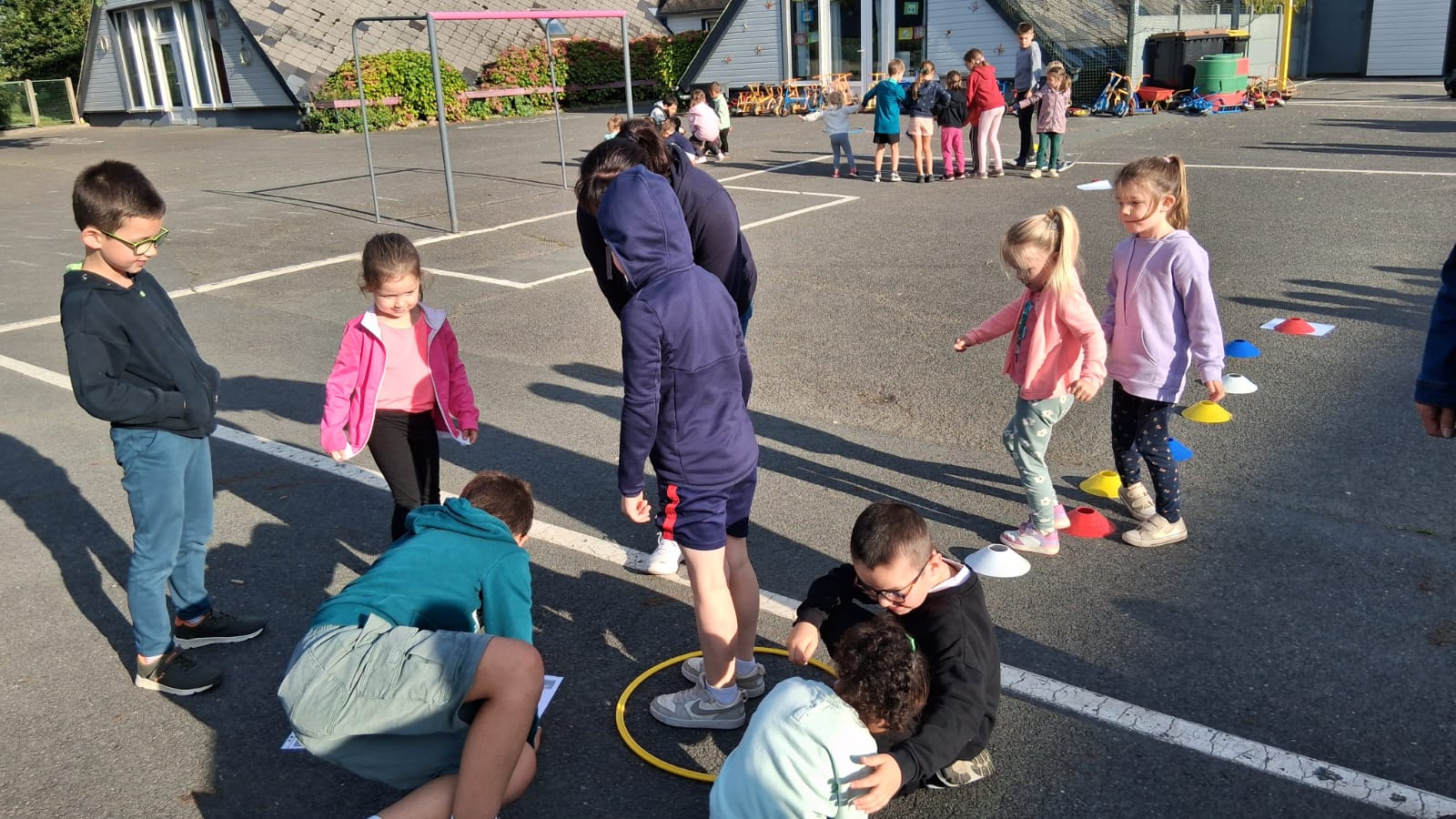 Vendredi 19 septembre, afin de promouvoir le sport à l’école, tous les enfants ont participé à un grand jeu intitulé « Bouge les régions » proposé par l’UGSEL. L’objectif était de vivre en équipe multi-niveaux, un temps sportif au sein de l’école pour fédérer les élèves.  Pour lancer le jeu tous les enfants se sont rassemblés et ont réalisé une belle chorégraphie dans une ambiance festive.