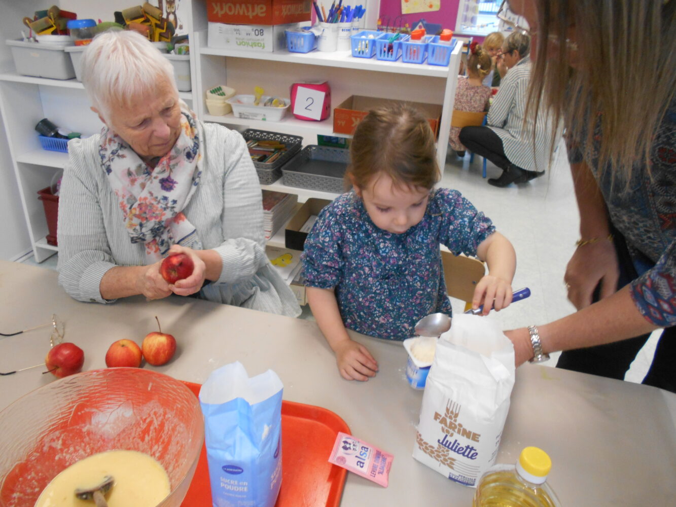 Cette journée s’est terminée par un goûter : les enfants et les grands parents ont dégusté les gâteaux aux pommes réalisés le matin.
